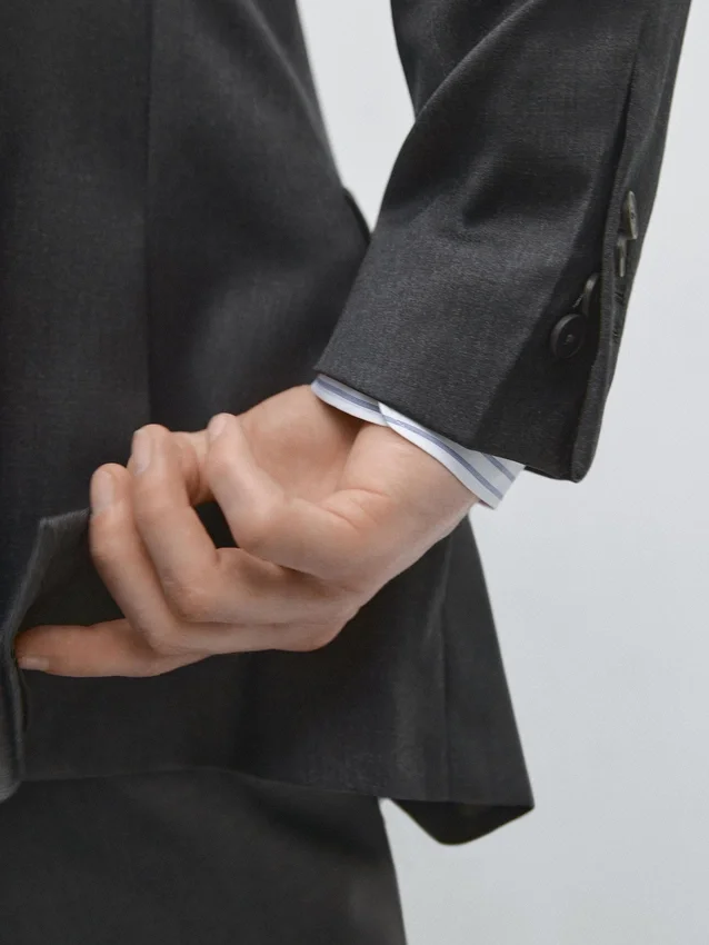 Blazer realizzato in tessuto principale 100% lana. Colletto con revers a lancia e asola. Maniche lunghe con polsini abbottonati. Chiusura a due bottoni. Due tasche con patta. Tasca a filetto sul petto. Tasche interne. Due spacchi posteriori. Dettagli di impuntatura. Cool Wool: tessuto leggero, traspirante e resistente alle pieghe. Questo capo fa parte di un abito da uomo.