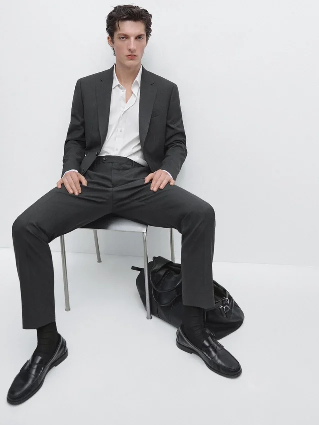 Blazer realizzato in tessuto principale 100% lana. Colletto con revers a lancia. Maniche lunghe con polsini abbottonati. Chiusura a due bottoni. Due tasche a filetto. Tasca a filetto sul petto. Due spacchi posteriori. Lana fresca: tessuto leggero, traspirante e resistente alle pieghe. Questo capo fa parte di un Abito da Uomo.Composizione