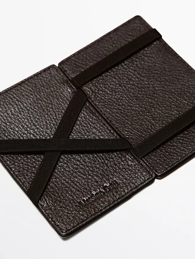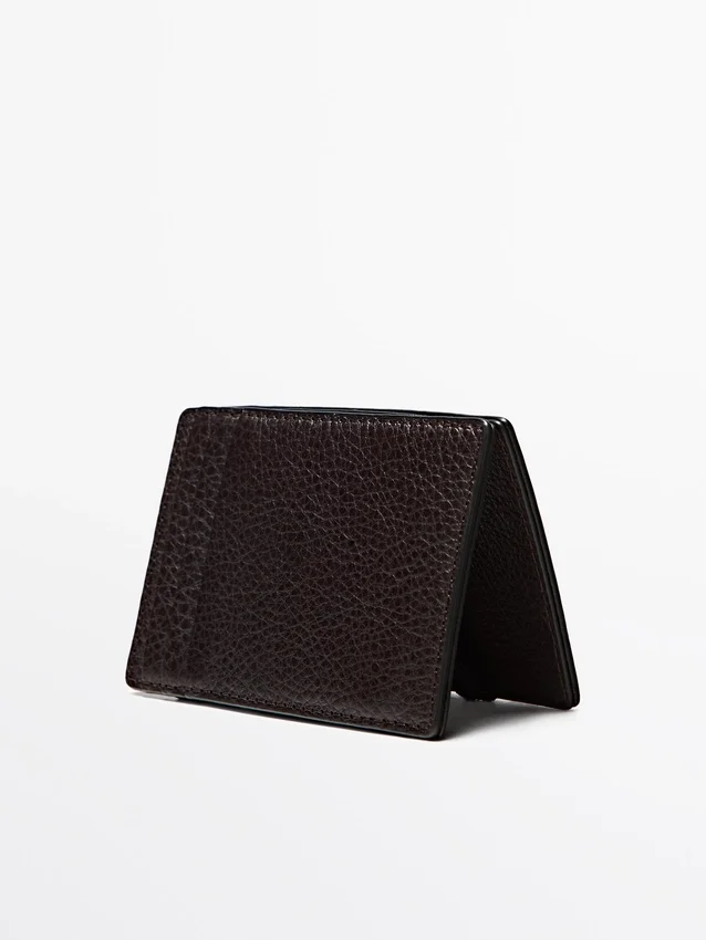 Portafoglio realizzato in pelle di vacchetta con finitura in nappa. Chiusura “magica”.