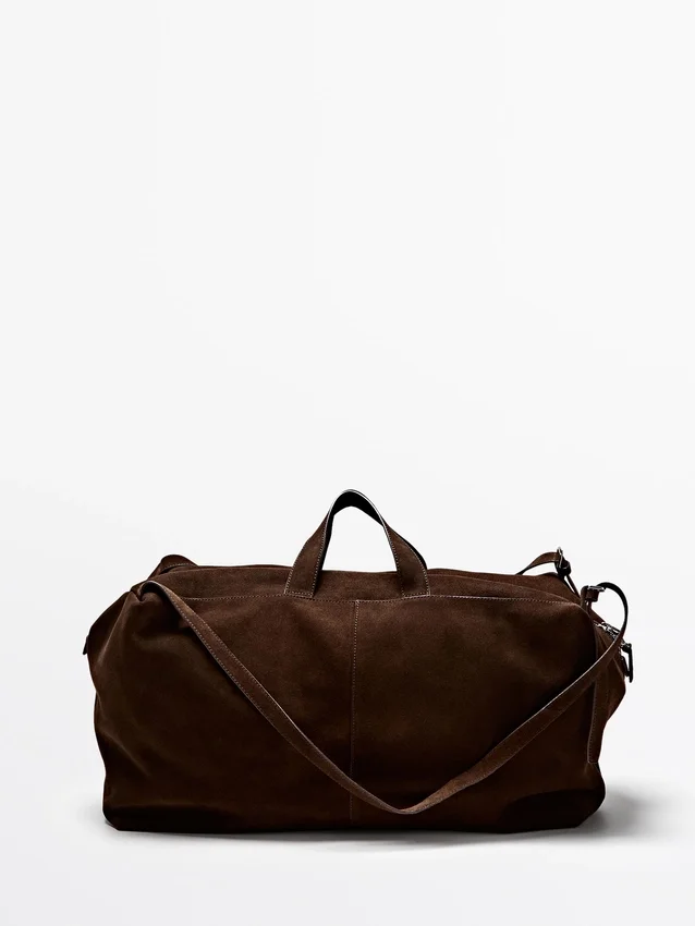 Borsa a mano in pelle bovina con finitura scamosciata. Presenta una chiusura con cerniera a doppio cursore. Due manici e un manico a tracolla regolabile. Tasca interna con cerniera. Fodera in cotone.
