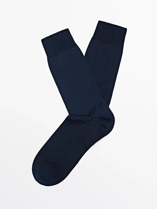 Calzini realizzati in tessuto misto cotone. Filato scozzese: un filato ottenuto dopo che il cotone ha subito un trattamento specifico per ottenere un prodotto altamente resistente con una finitura setosa e lucida.