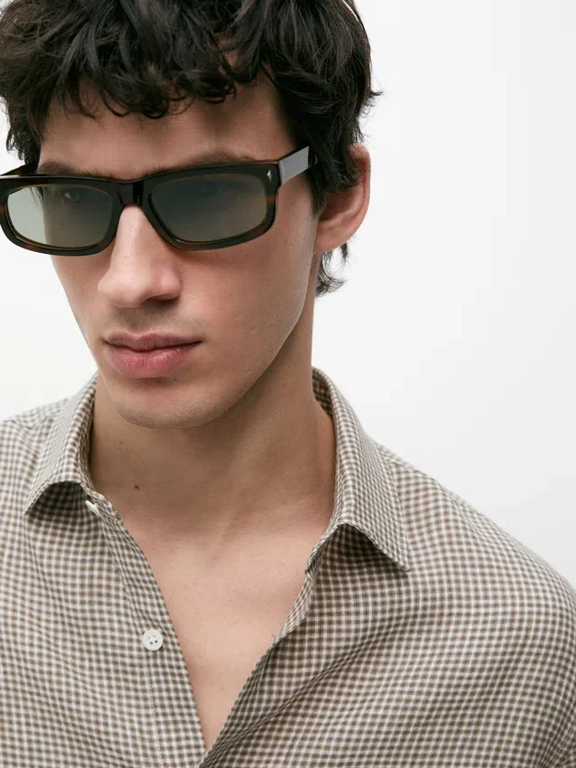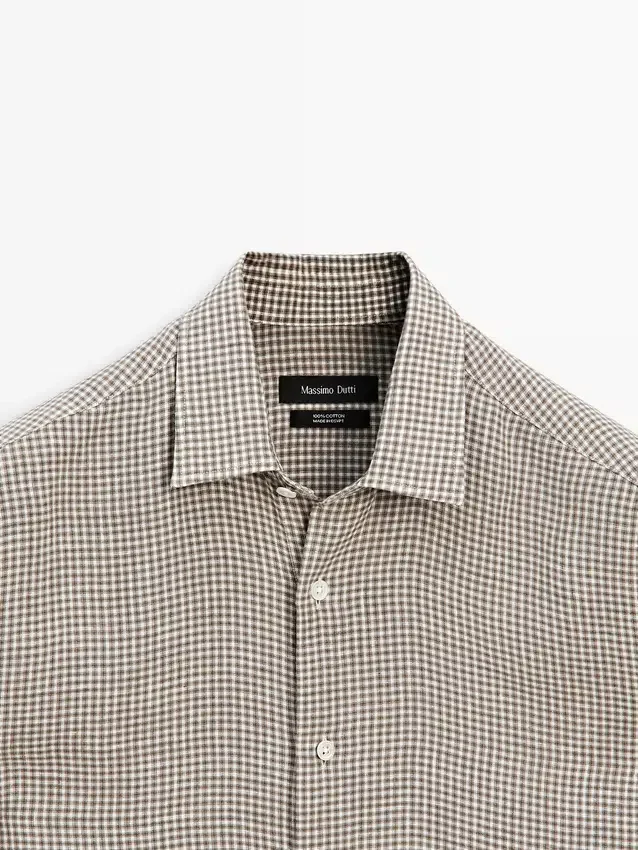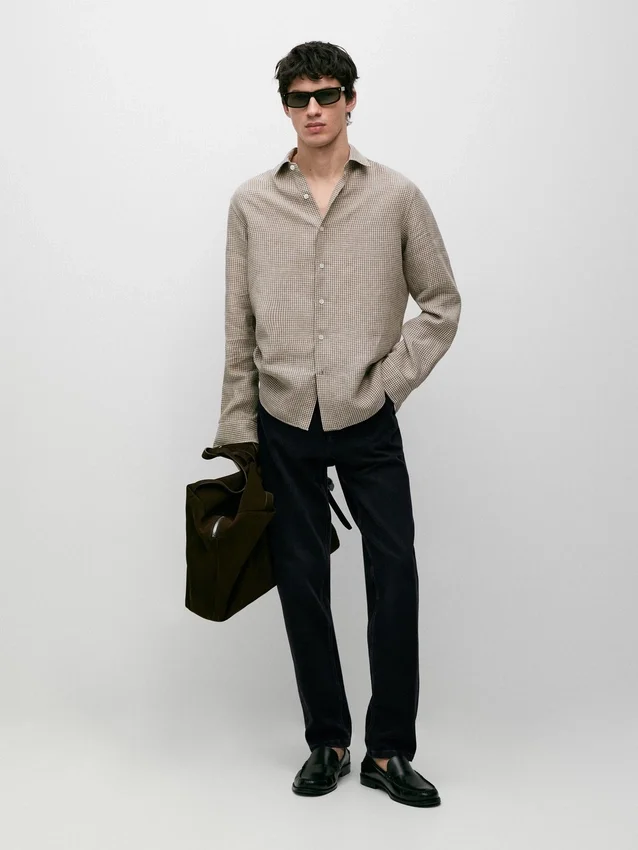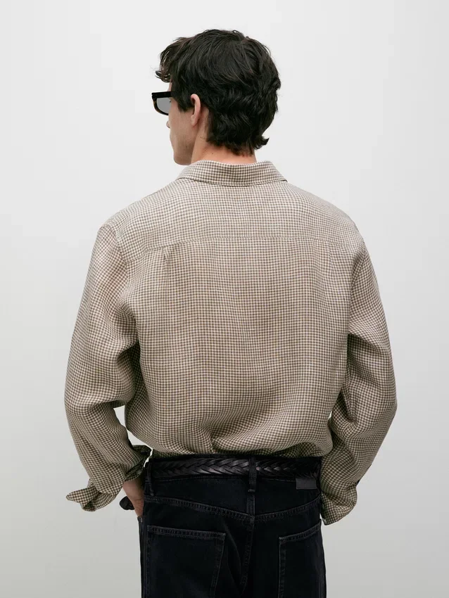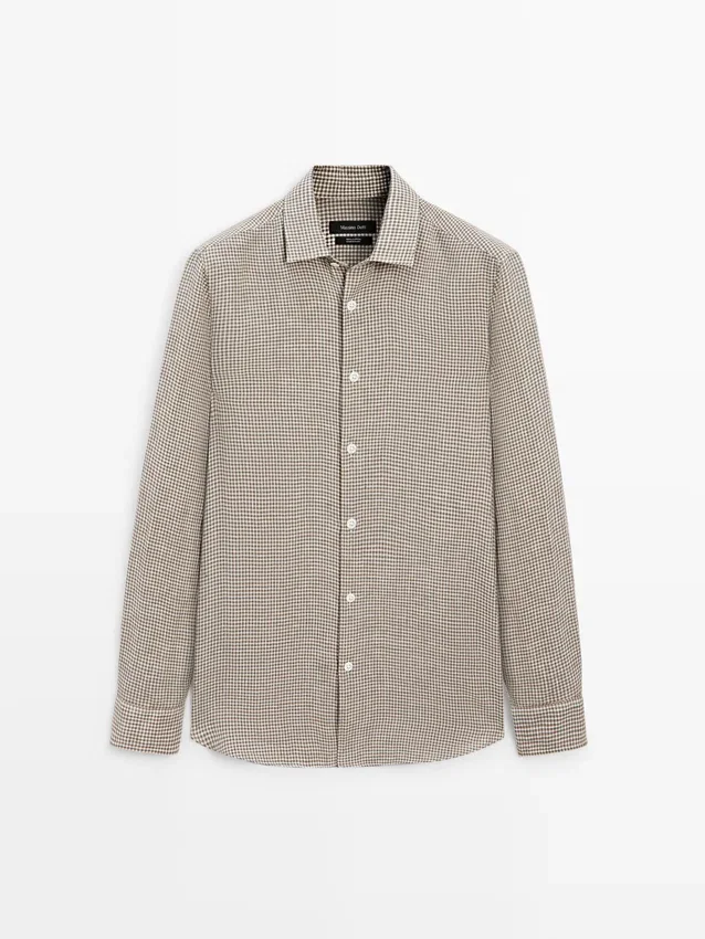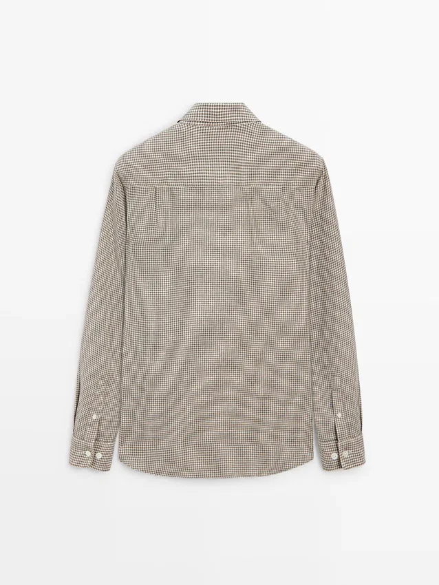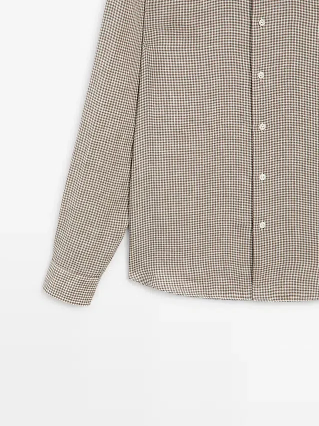 Camicia realizzata in 100% lino. Maniche lunghe con polsini abbottonati. Colletto alla camicia. Chiusura frontale con bottoni. Stampa a quadri.