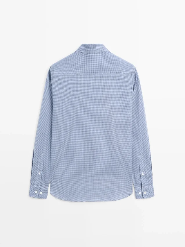 Camicia realizzata in tessuto 100% cotone. Maniche lunghe con polsini abbottonati. Colletto da camicia. Vestibilità regolare: questa vestibilità offre comfort con un po’ più di spazio sul busto. Chiusura frontale con bottoni. Stampa a quadri.
