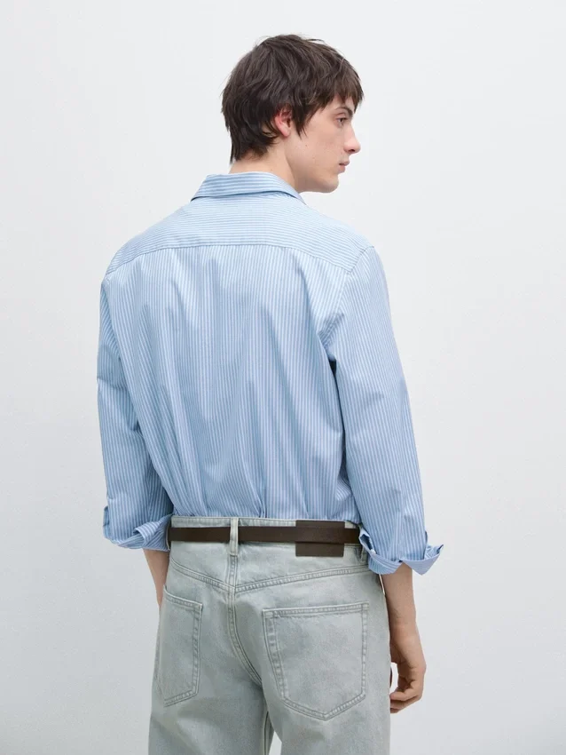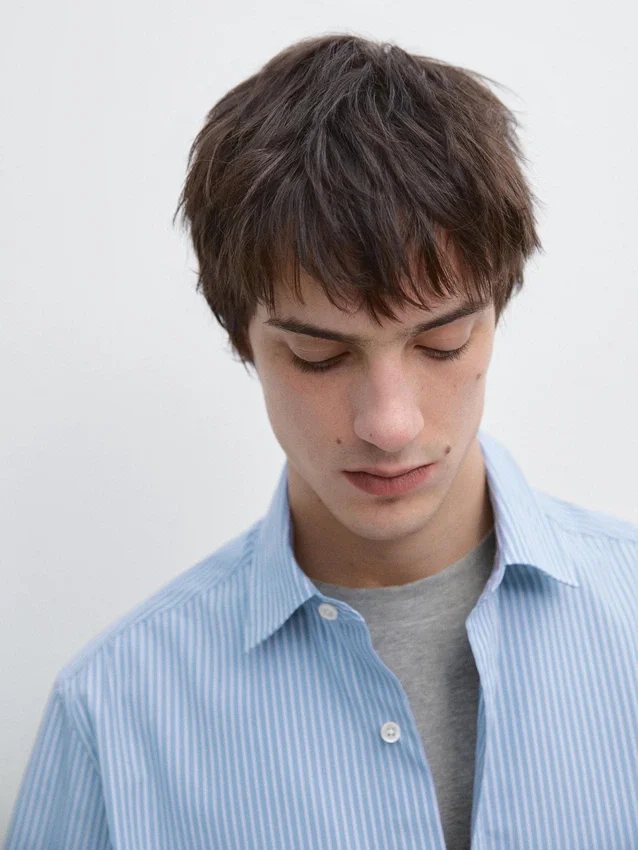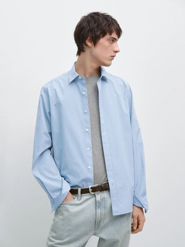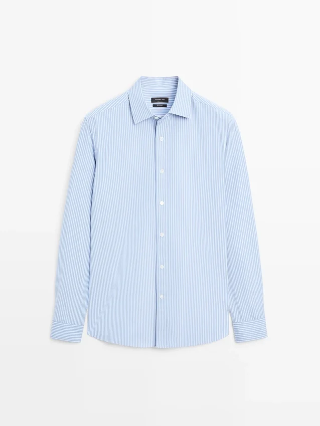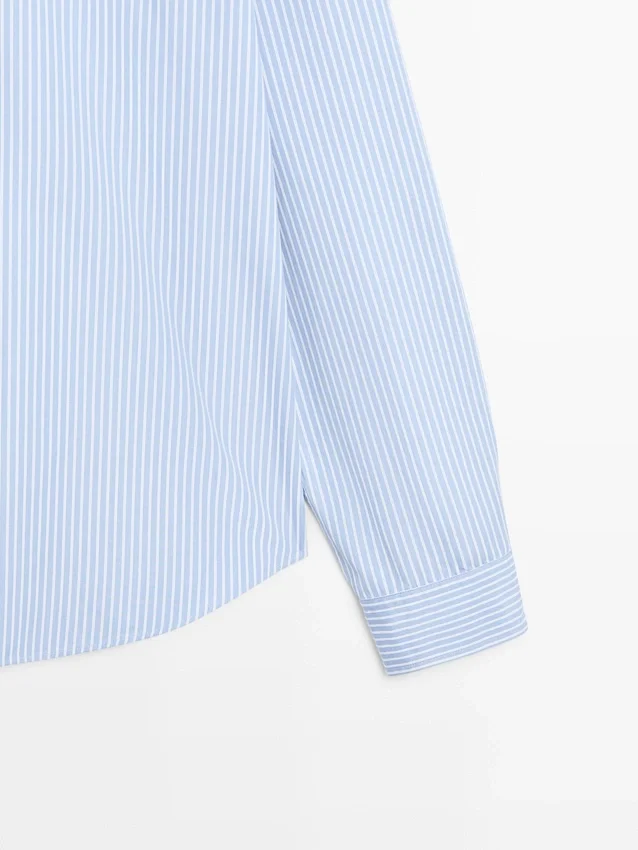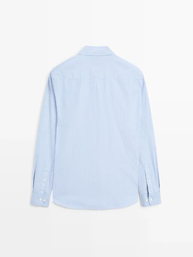 Camicia realizzata in tessuto misto cotone. Maniche lunghe con polsini abbottonati. Colletto alla camicia. Chiusura frontale con bottoni. Dettaglio a doppia riga.