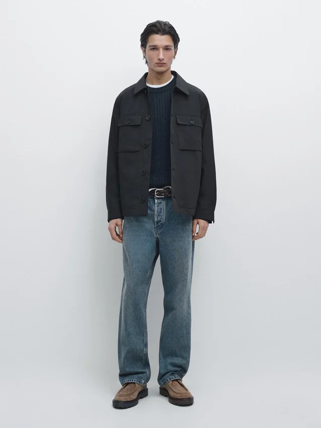 Giacca corta. Colletto a camicia. Maniche lunghe con dettaglio bottoni. Chiusura a doppio petto con bottoni. Due tasche laterali. Due tasche applicate con bottoni sul petto.<!–Che contiene almeno: