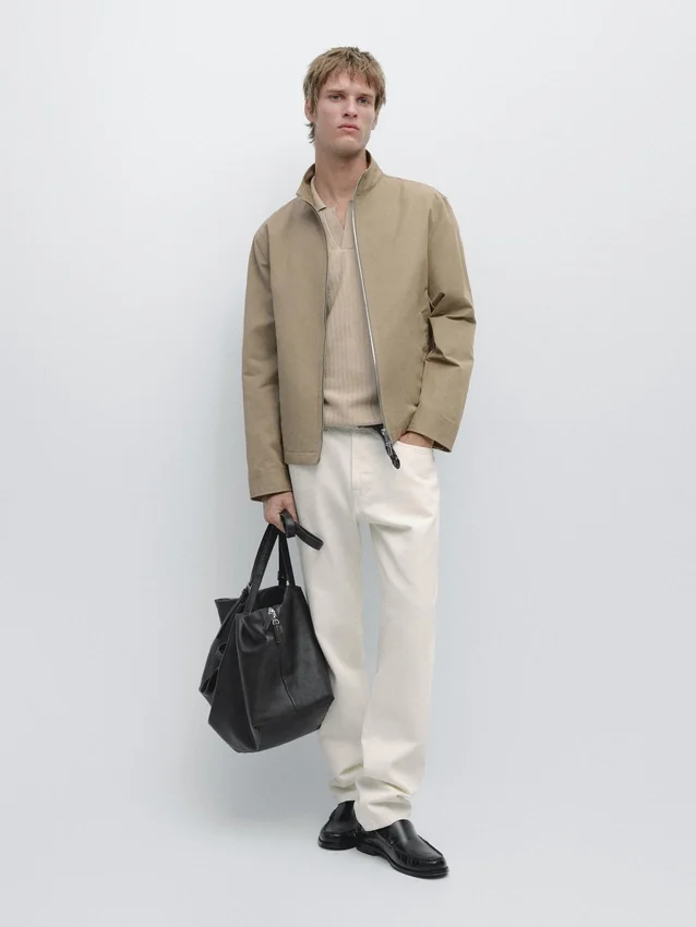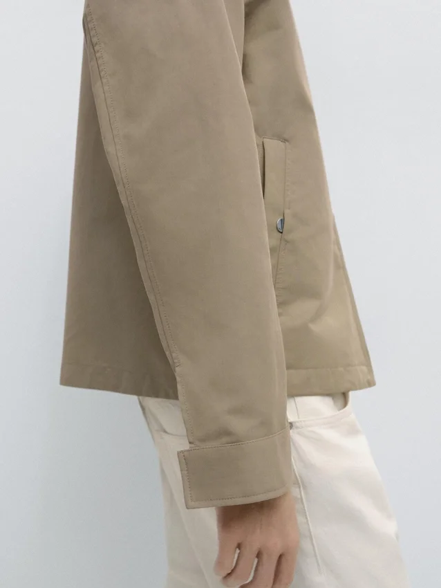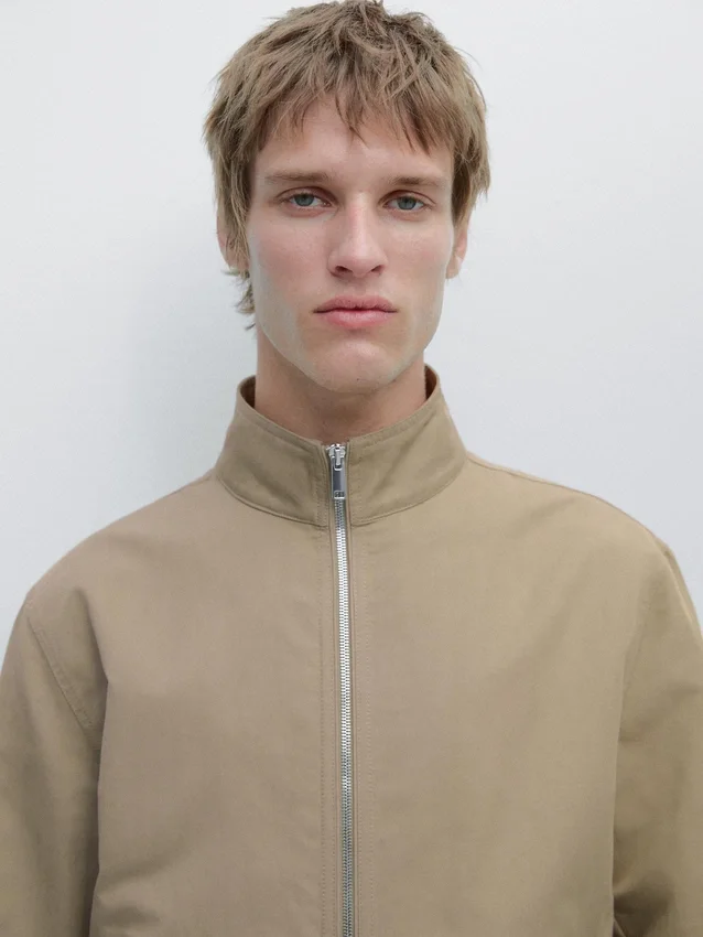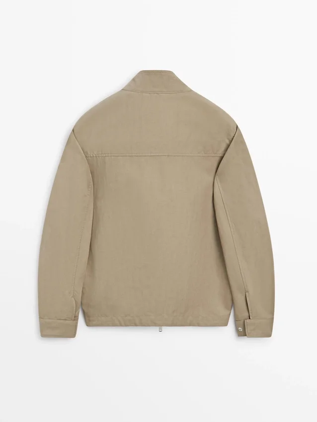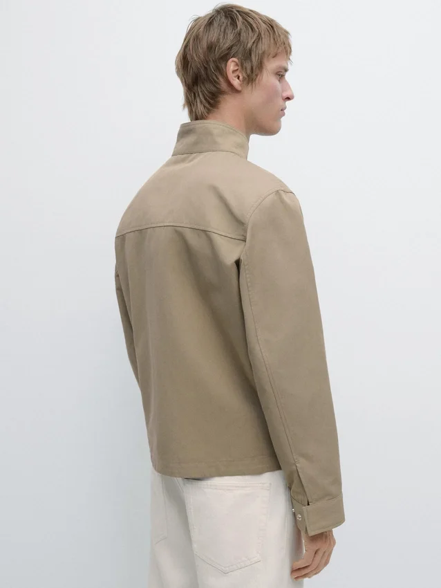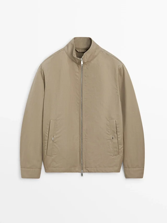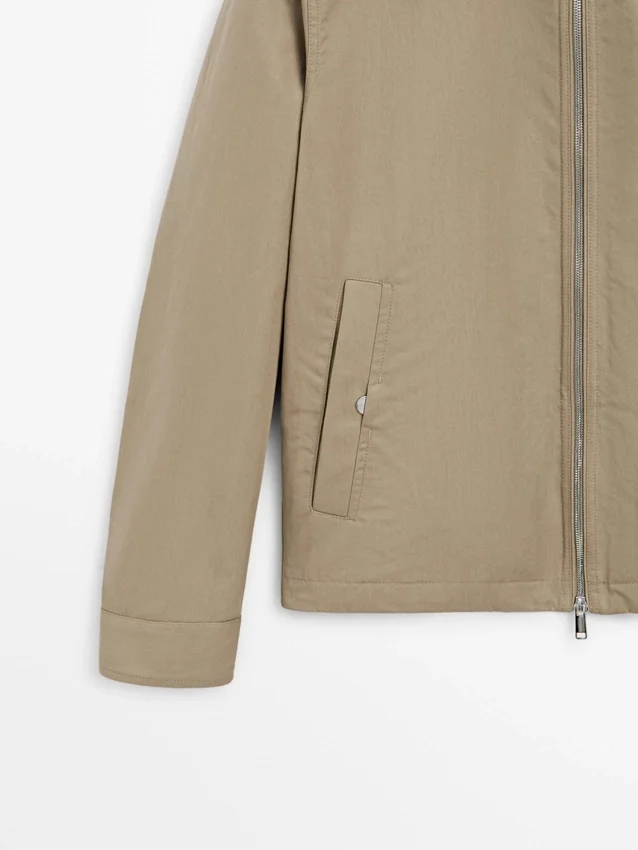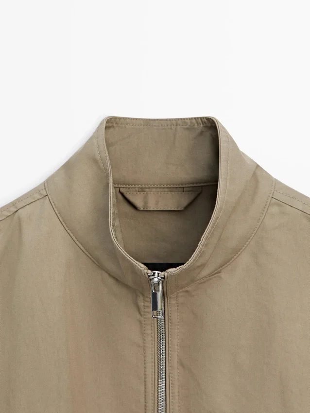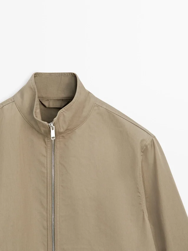 Giacca realizzata in tessuto leggero. Maniche lunghe. Chiusura con cerniera a doppio cursore. Collo alto. Due tasche laterali.