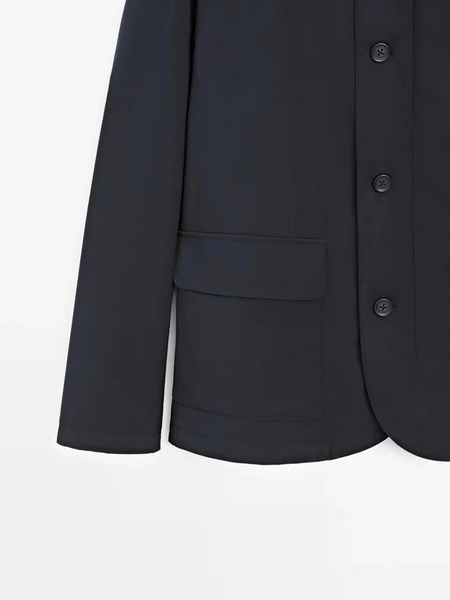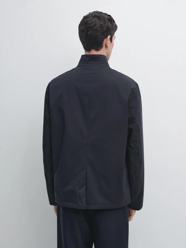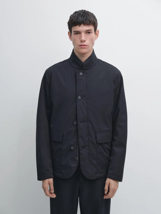 Giacca trapuntata. Maniche lunghe. Collo alto. Chiusura frontale con zip a doppio cursore nascosta da una patta con bottoni. Tasche con patta e chiusura a bottoni a pressione. Tasca interna con zip. Apertura centrale sul retro con chiusura a bottoni a pressione. Dettaglio: meccanismo di chiusura rapido e facile, progettato per offrire un maggiore comfort. Tessuto idrorepellente.