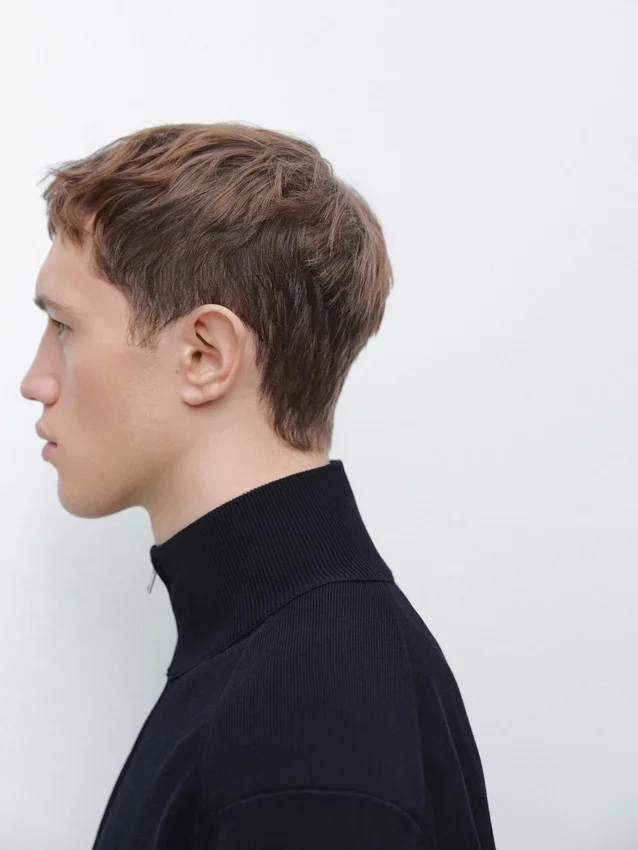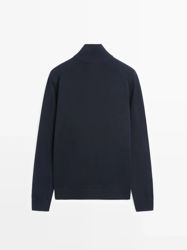 Cardigan in maglia di cotone. Maniche lunghe. Collo alto. Bordi a costine.