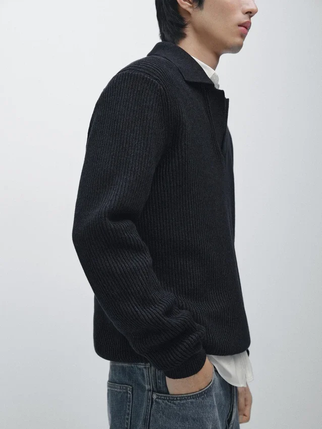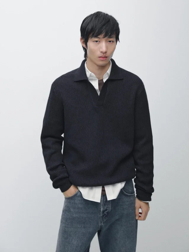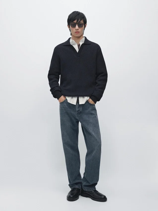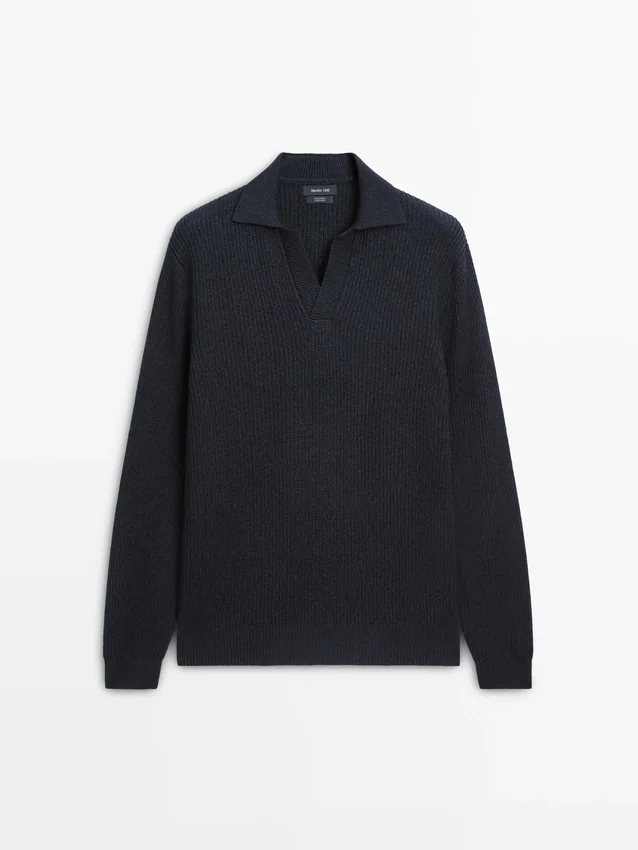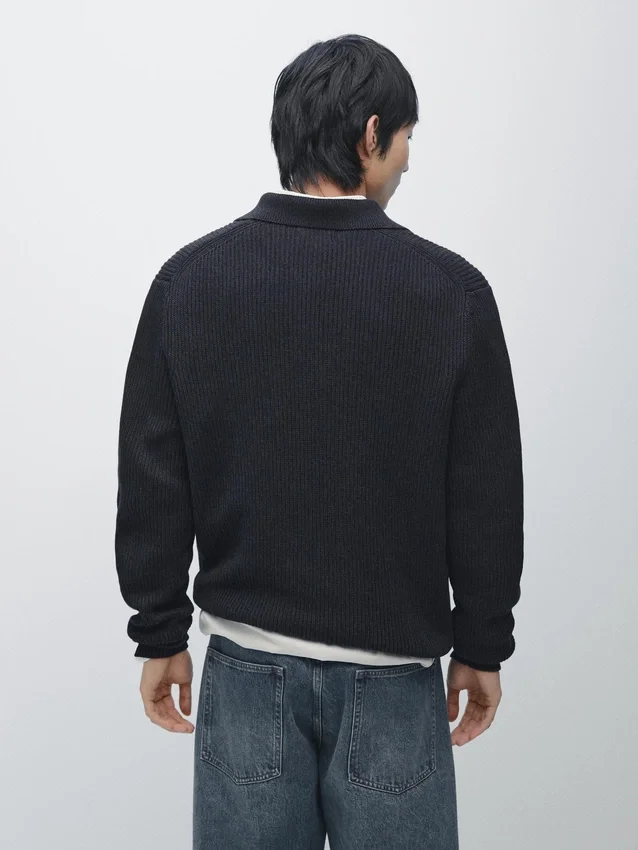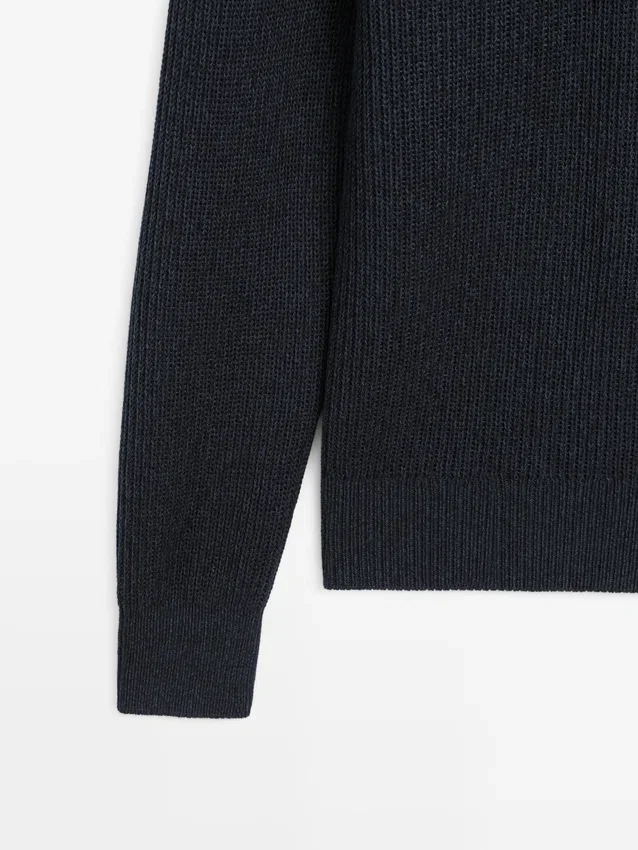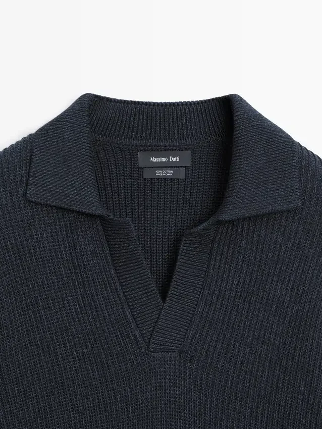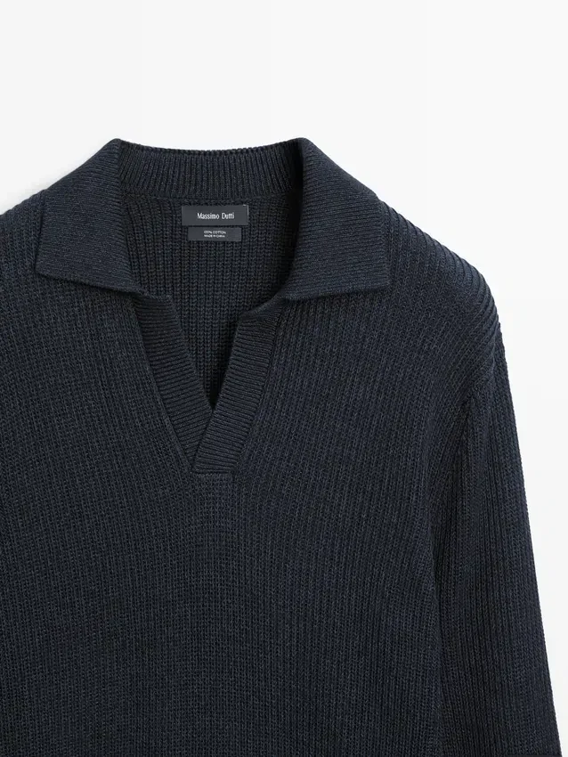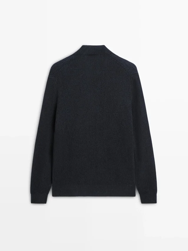 Maglione in maglia realizzato in tessuto di cotone. Collo alla Johnny. Maniche lunghe. Bordi a costine. Realizzato in filato Moulina che conferisce un aspetto bicolore molto caratteristico..