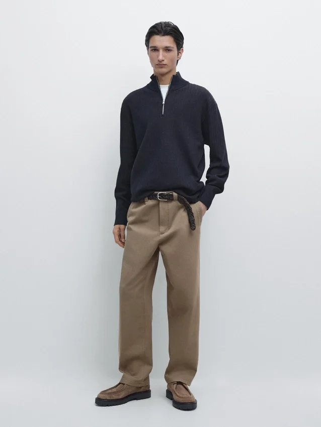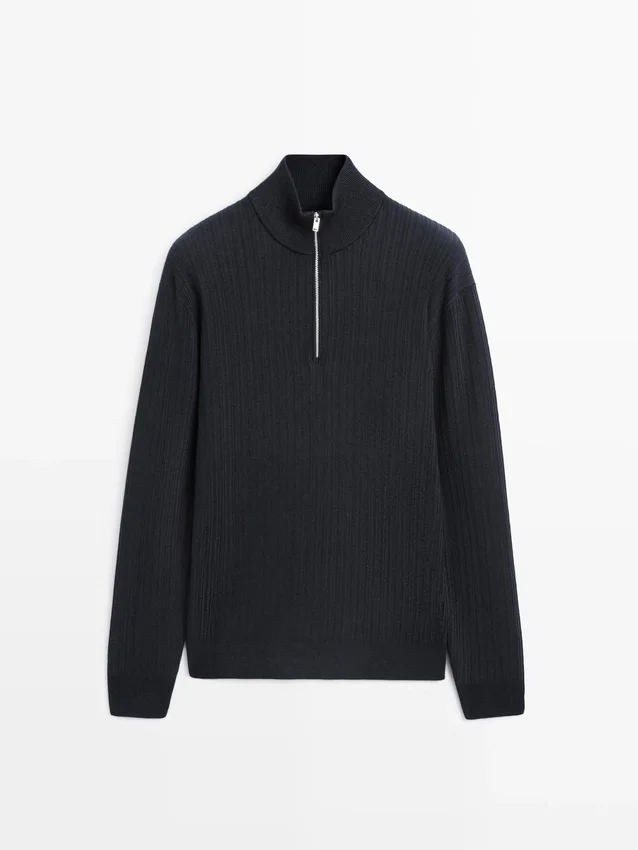 Maglione in maglia di cotone. Maniche lunghe. Collo alto con cerniera.