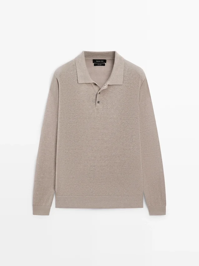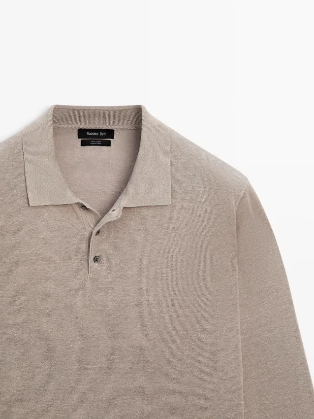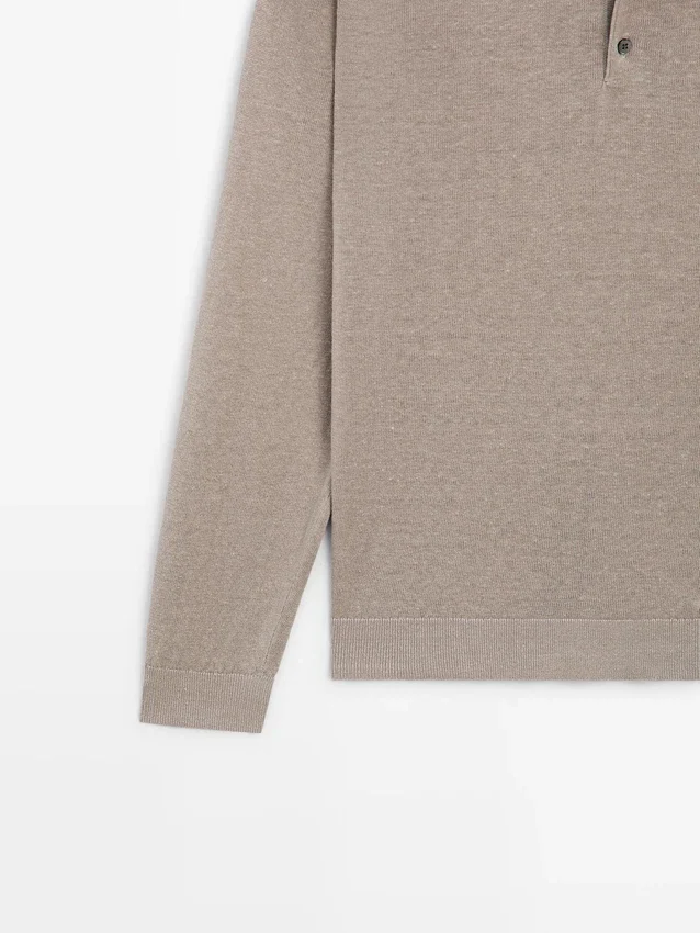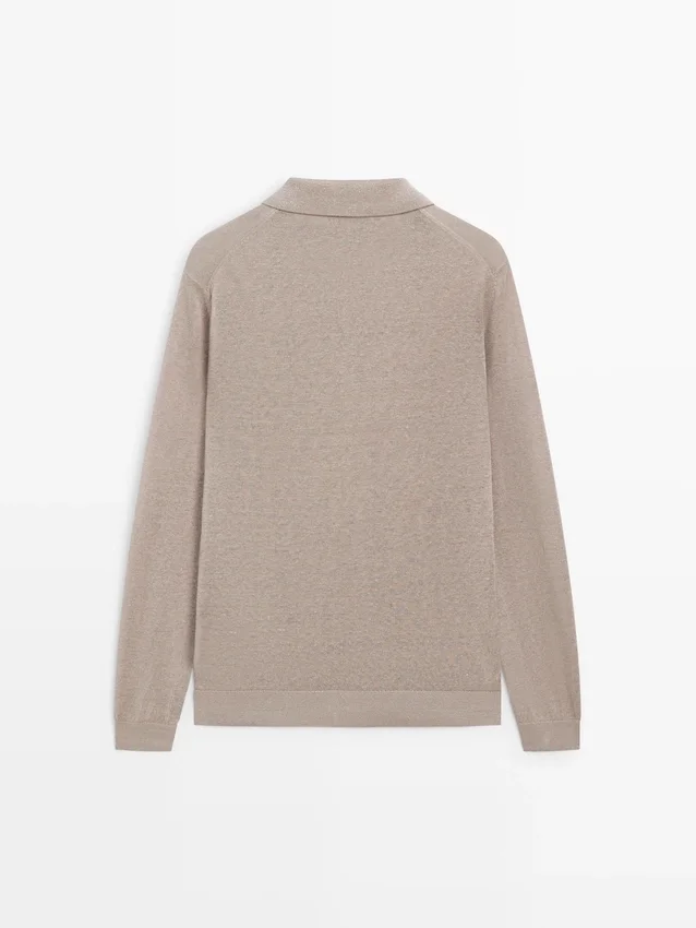 Maglione in maglia di lino con collo a polo