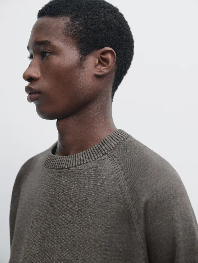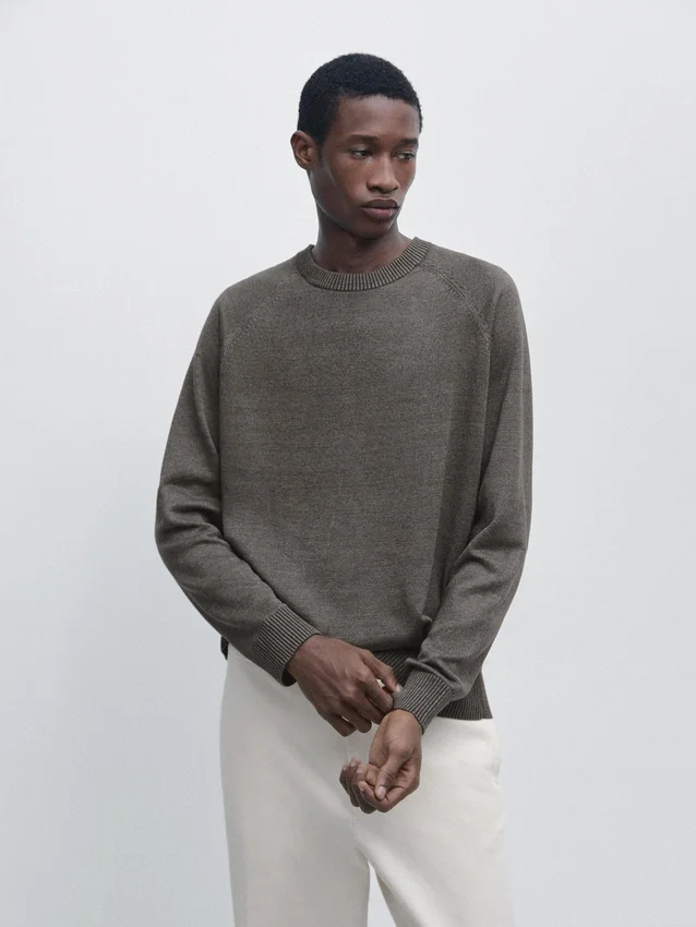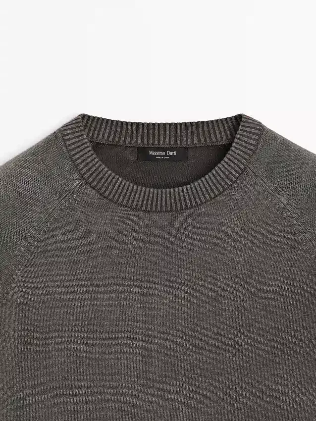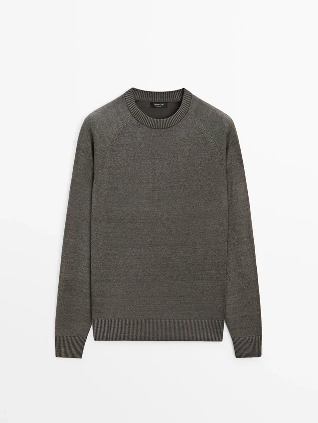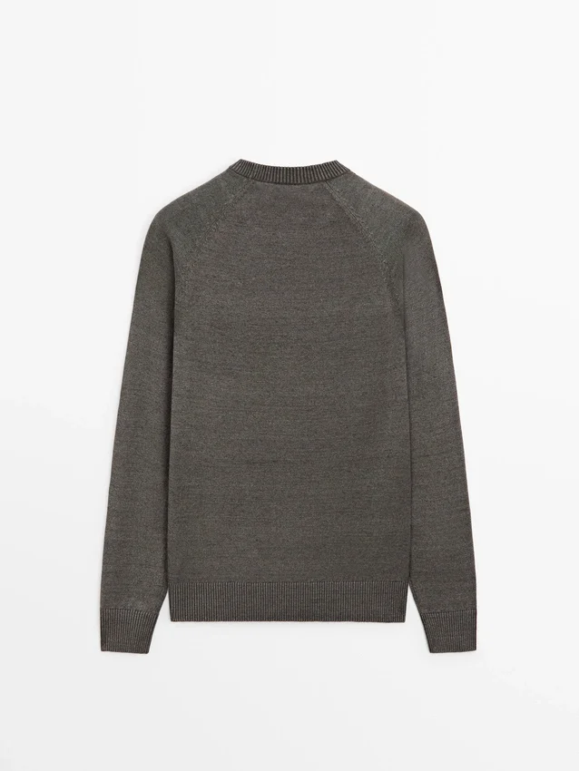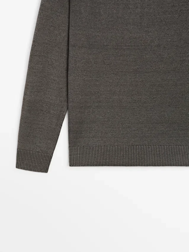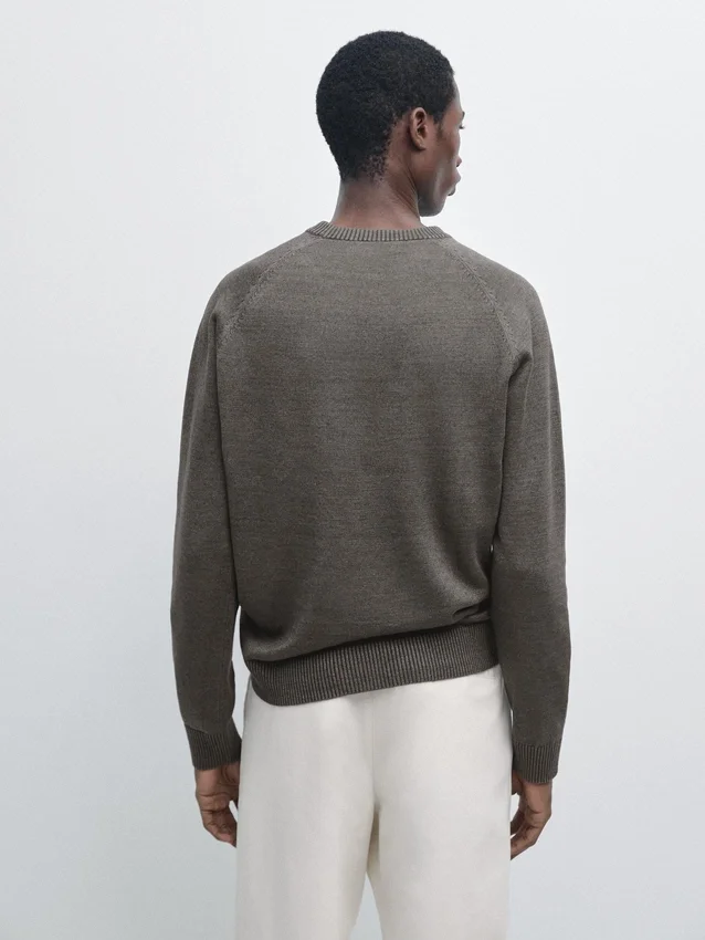 Maglione realizzato in tessuto misto lino. Girocollo. Maniche lunghe. Bordi a costine.