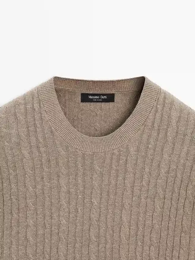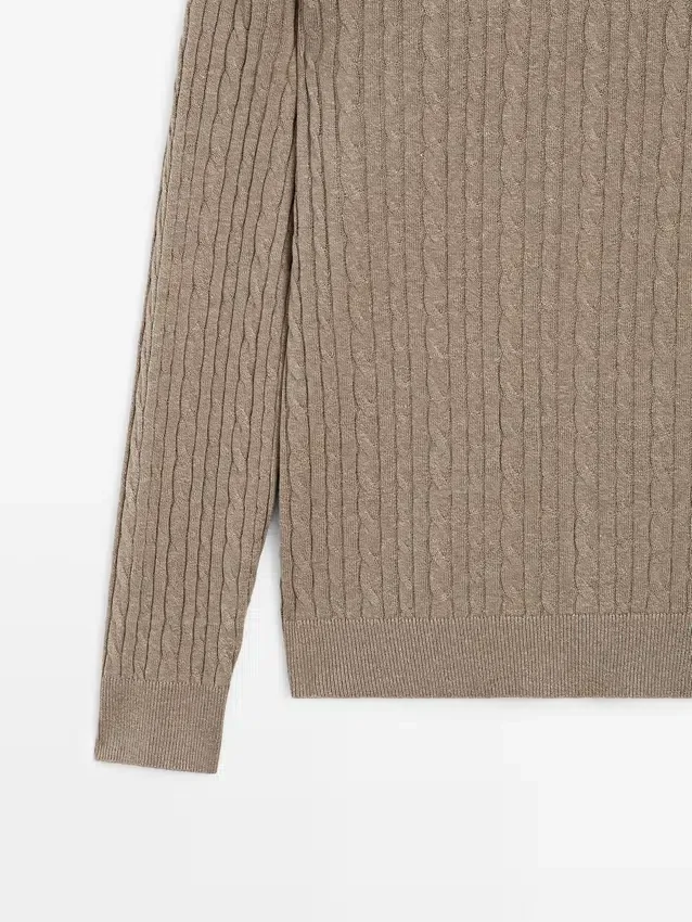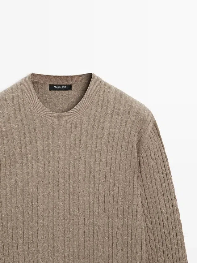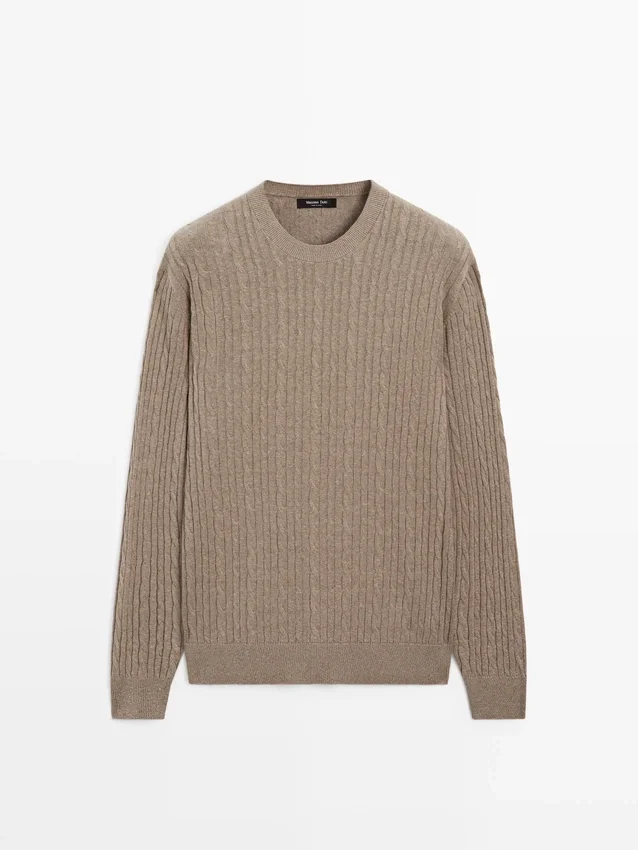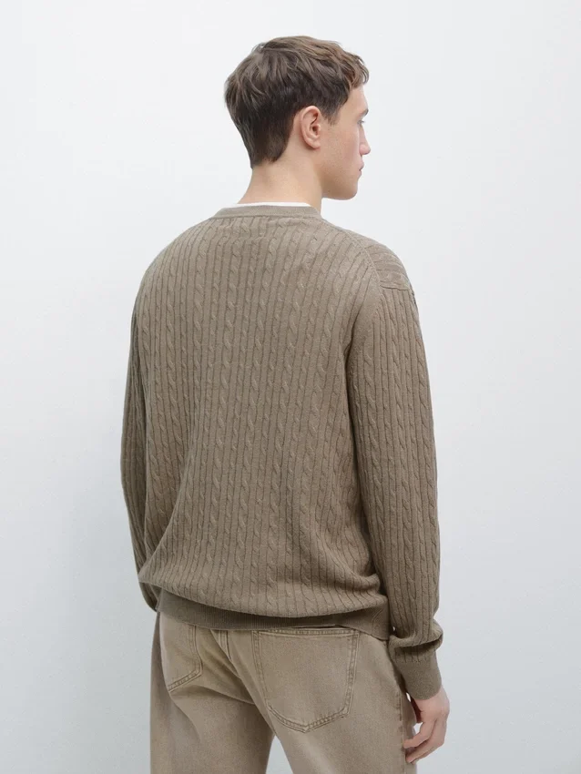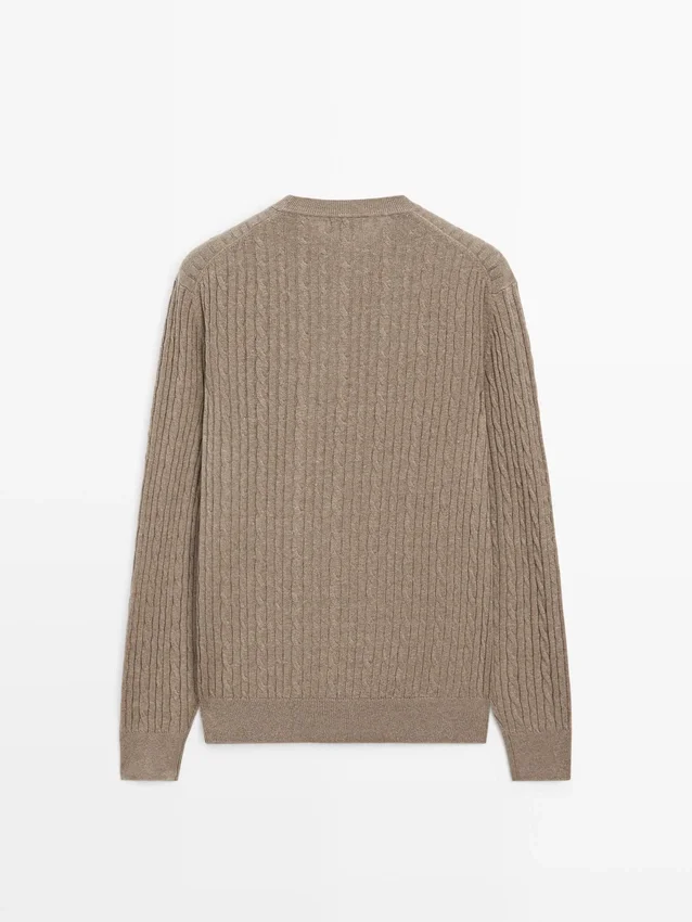 Maglione a trecce in misto cotone. Girocollo. Maniche lunghe. Bordi a costine.