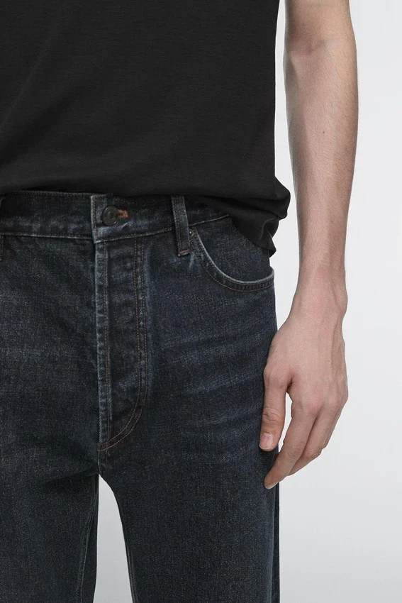 Jeans a gamba dritta: silhouette dritta dalla vita alla caviglia, senza ulteriori regolazioni della gamba. Passanti per cintura. Chiusura frontale con cerniera e bottone superiore. Design a cinque tasche. Capo abbinato disponibile.