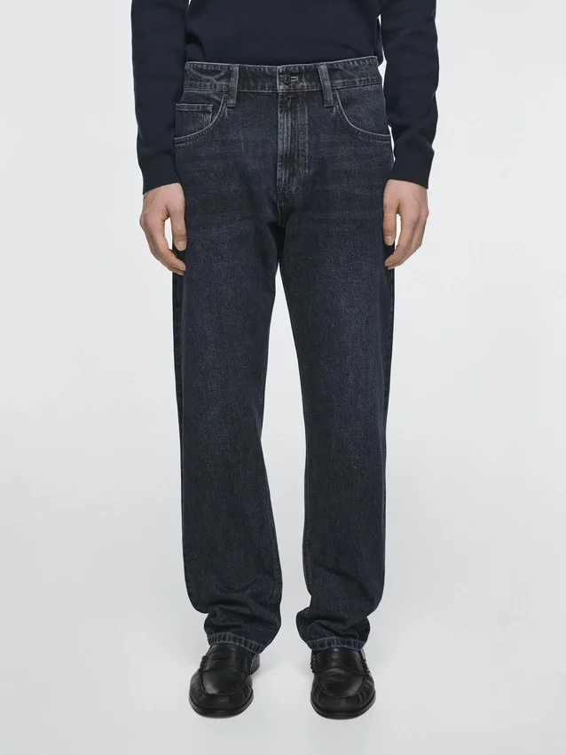 Jeans dalla vestibilità comoda: questa vestibilità presenta una silhouette ampia e morbida in vita, sui fianchi e sulle gambe. Chiusura frontale con cerniera e bottone superiore. Design a cinque tasche.