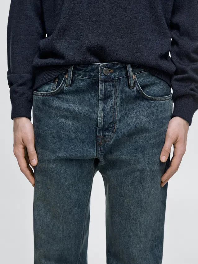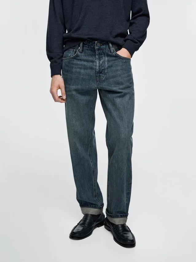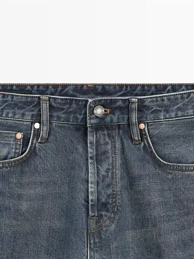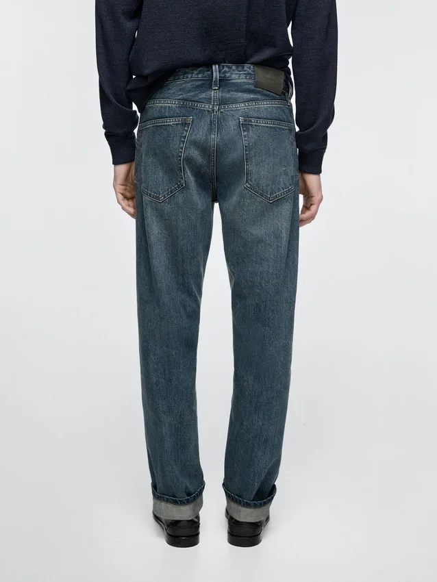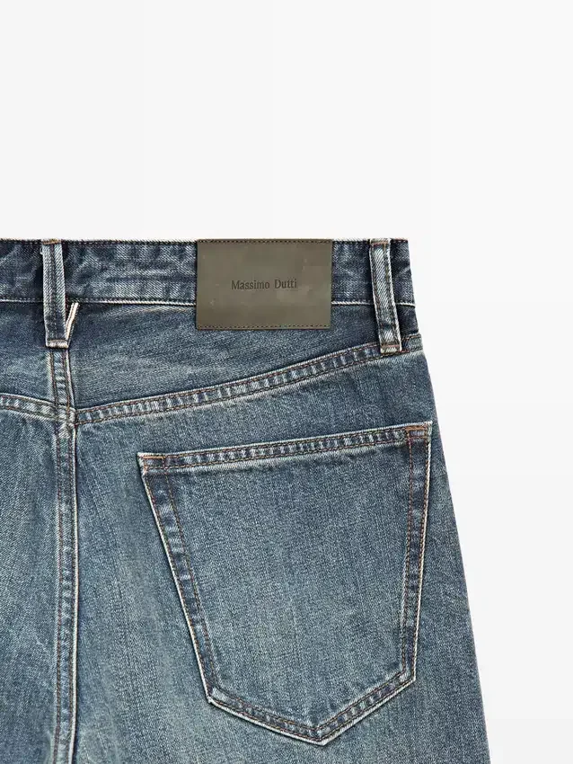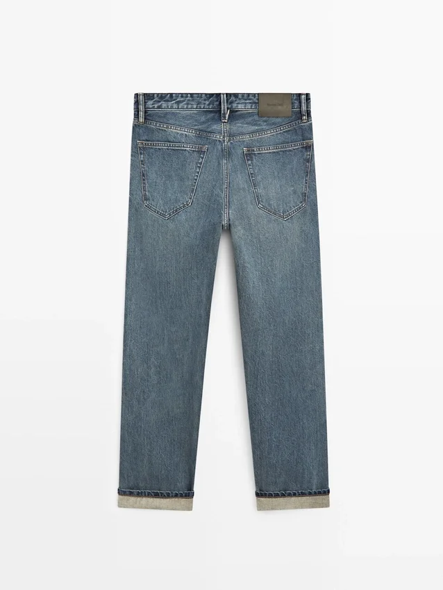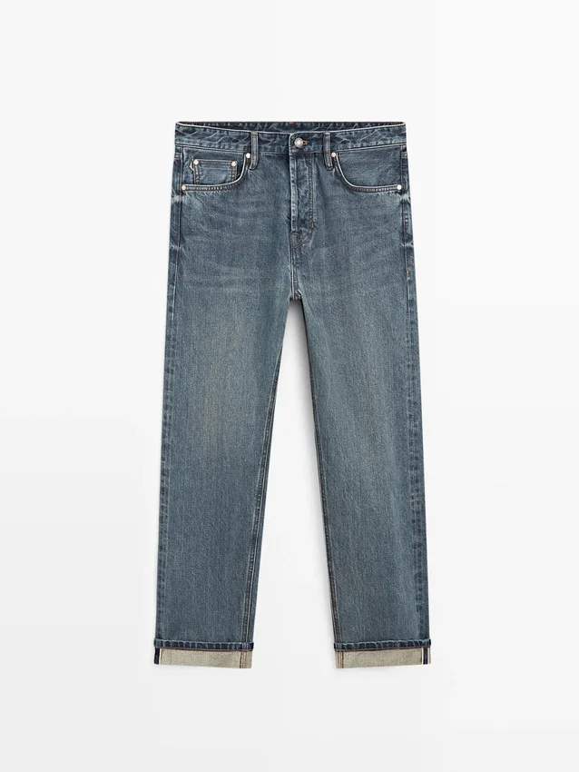 Jeans con cimosa a contrasto e cucitura esterna dritta. Design a cinque tasche.