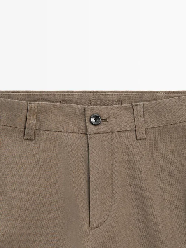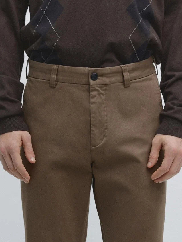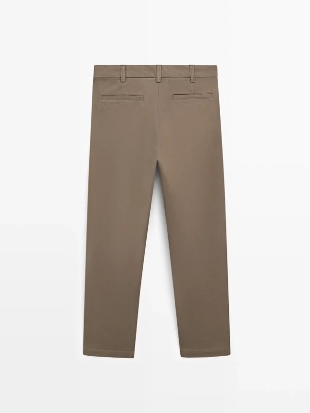 Pantaloni dal taglio affusolato: questo modello presenta una vestibilità comoda in vita che si restringe gradualmente verso le caviglie. Chiusura con cerniera nascosta con patta, bottone e bottone interno. Due tasche laterali. Due tasche a filetto sul retro. Realizzati in tessuto misto cotone. Dettaglio del tessuto con microstruttura.Composizione