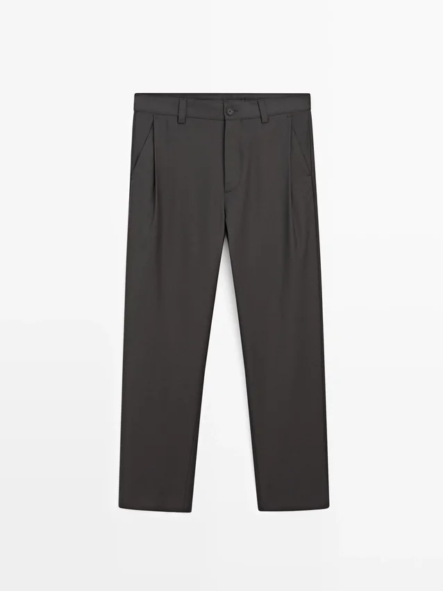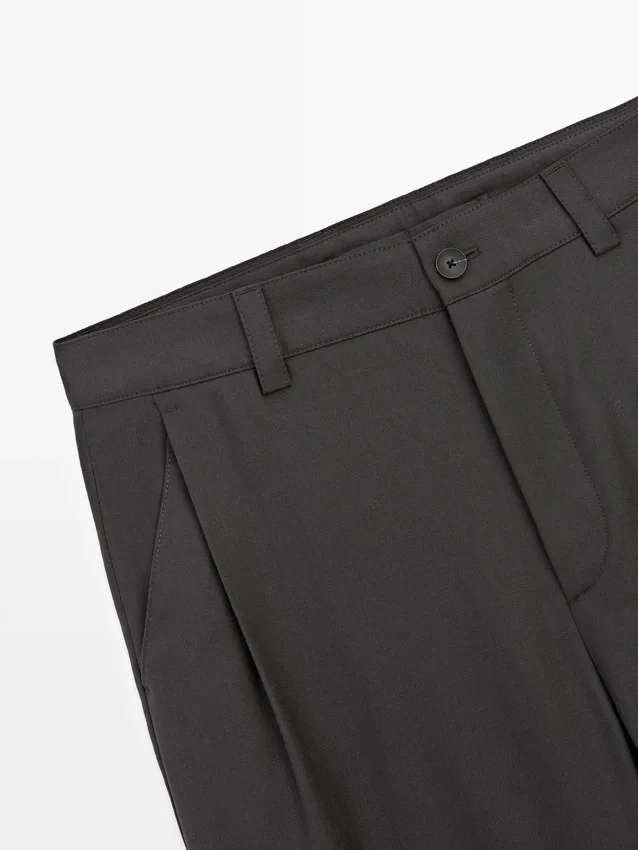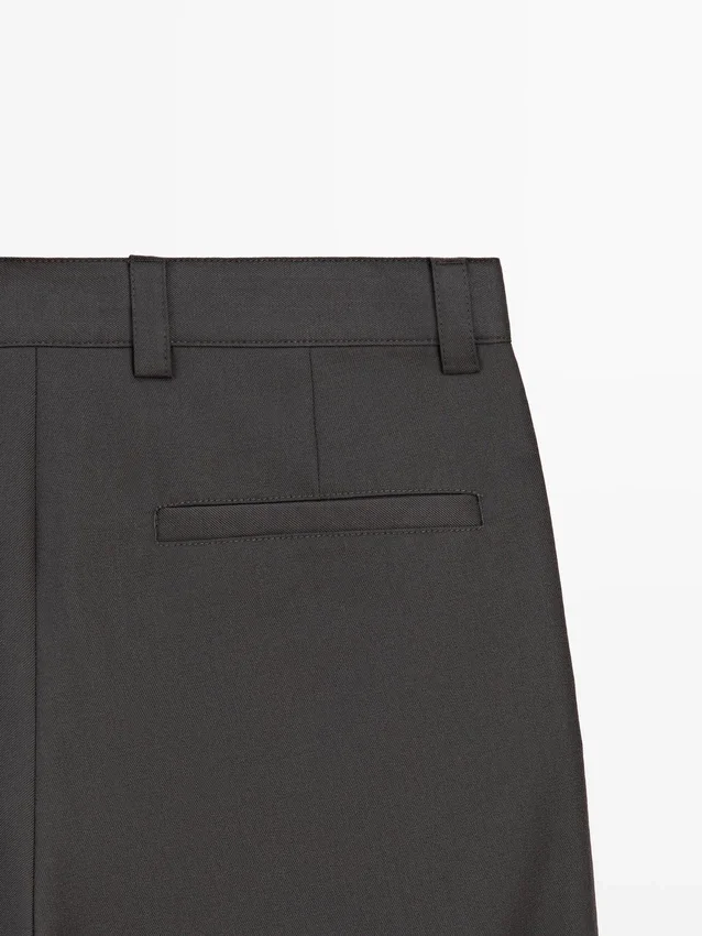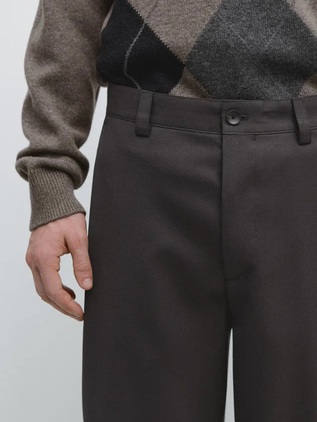 Pantaloni dalla vestibilità comoda: questo modello presenta una silhouette ampia e morbida in vita, sui fianchi e sulle gambe. Pantaloni realizzati in misto lana. Chiusura frontale con zip e bottone superiore. Due tasche laterali. Due tasche a filetto sul retro. Pinces sui lati.Composizione