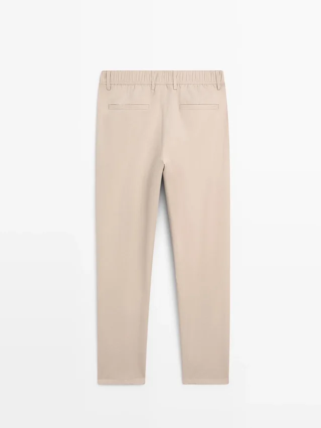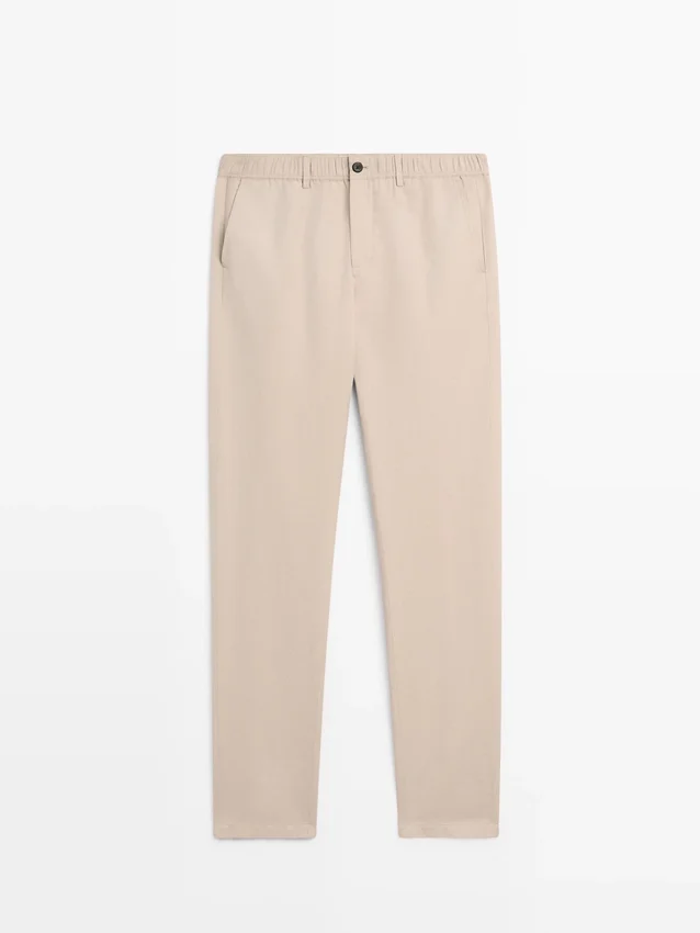Pantaloni jogger: questo modello presenta una vita elasticizzata e regolabile, e la gamba è solitamente leggermente aderente, offrendo uno stile rilassato ma moderno. Passanti per cintura. Chiusura frontale con cerniera e bottone superiore. Dettaglio della cintura elasticizzata. Due tasche laterali.Composizione